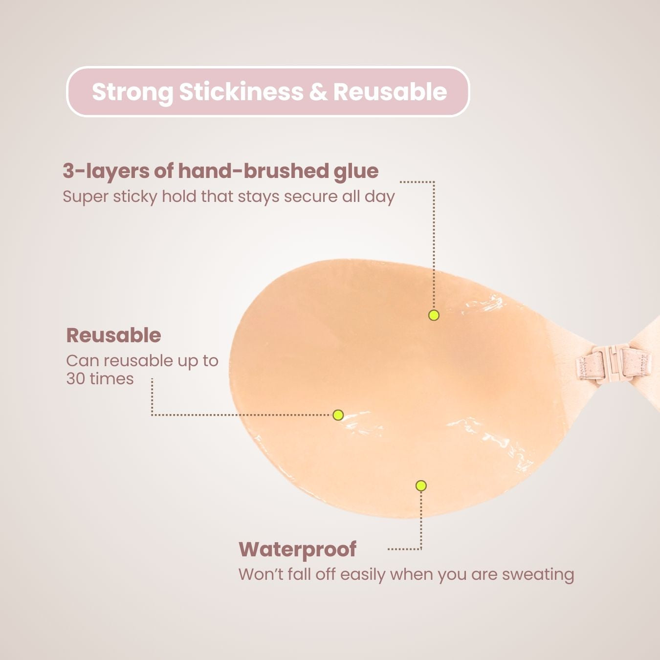 Experience the perfect balance of comfort, support, and invisibility with our newly upgraded breathable nude bra. We've enhanced every aspect, from improved seamlessness and stronger stickiness, to longer-lasting wear and a more natural nude tone that blends beautifully with your skin. Plus, it now offers a nipple protection for better security.