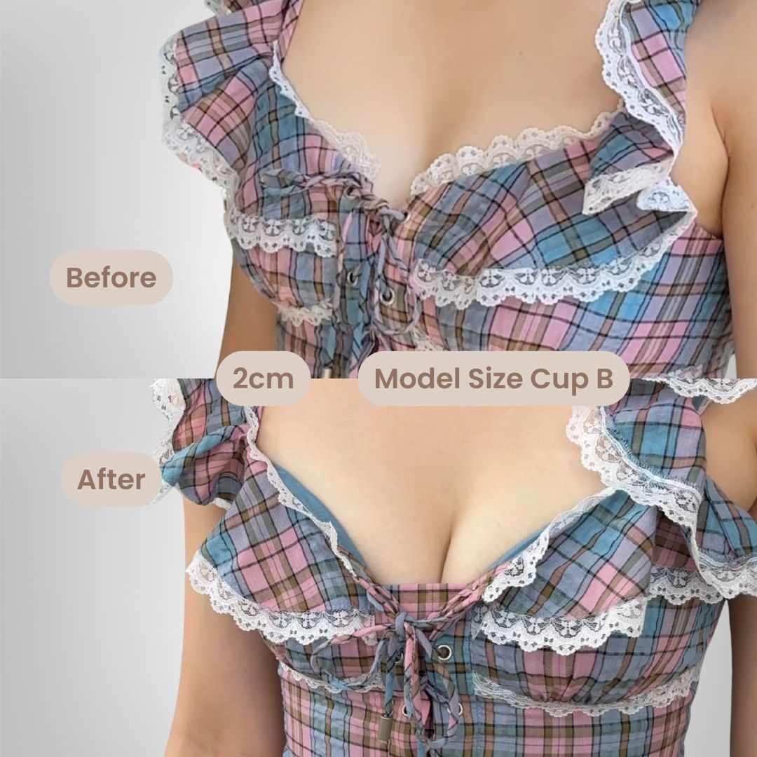 2cm Thickness: Designed for a more dramatic effect, this option pushes up your bust by 1-2 cup sizes, creating a striking deep cleavage.