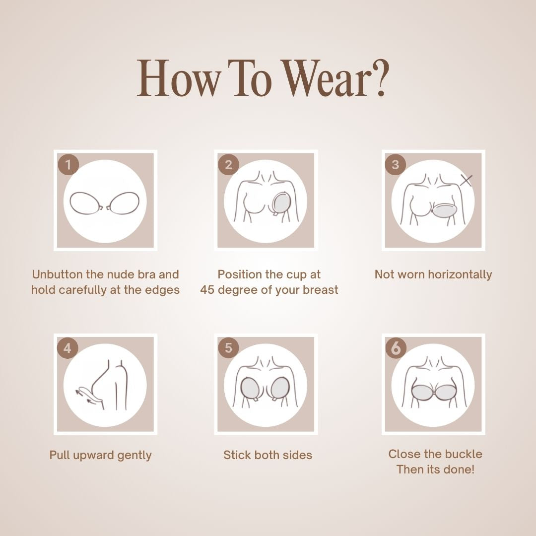 2. Stick the adhesive part of the nude bra with a 45 degree on the breast, repeat this step to another breast